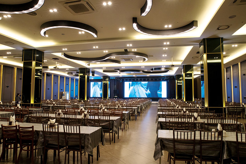 연회장의 700인치 대형LED 전광판은 생동감있는 식전영상을 상시 상영합니다.